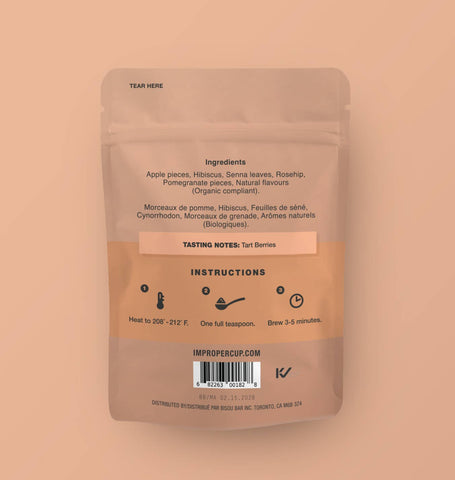 Ingredients: Apple pieces, Hibiscus, Senna leaves, Rosehip, Pomegranate pieces, Natural flavors (Organic Compliant)