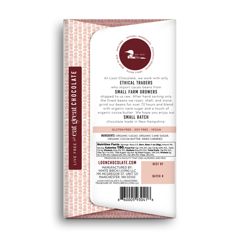Loon Chocolate - Dark Chocolate with Dried Cherry